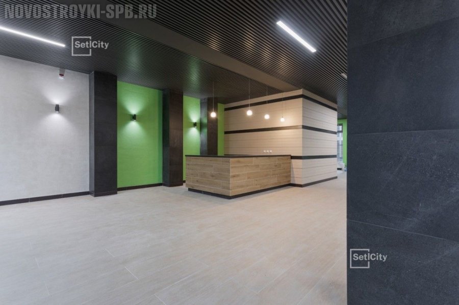 Первые этажи займут торговые предприятия, им выделена площадь 1600 м². На входе в дом поставят стойку администрации. Проживание в новострое сделают безопасным – установят камеры видеонаблюдения и наймут службу охраны. Заезд машиной во двор – недоступен, оставить транспорт можно в подземном паркинге, который рассчитан на 440 автомобилей. Придомовую зону озеленят и проведут ландшафтный дизайн. К комплексу прилегает набережная реки Невы, ее строительная фирма также благоустроит.